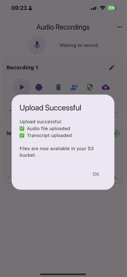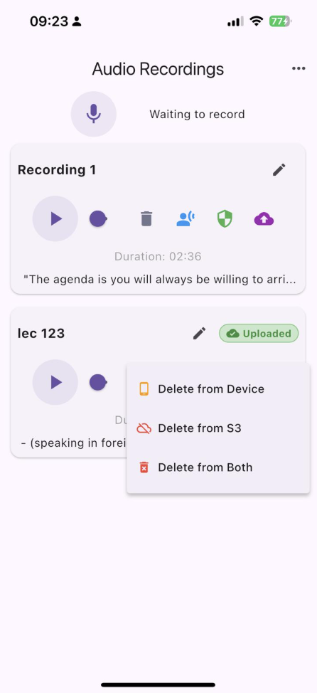 We, as researchers, need data on a server to run experiments, but teachers (and students’ parents) need to trust that their data is handled properly. We landed on a design where personal data stays on the teacher’s device by default, and upload to our research servers is an explicit, separate action. The teacher can review the transcription before uploading, and can delete data from the device, from the server, or from both — independently. We also added a full account deletion option: one tap removes all associated data everywhere. This sounds simple, but implementing proper cascading deletion across device storage, cloud storage, and authentication records required careful coordination.