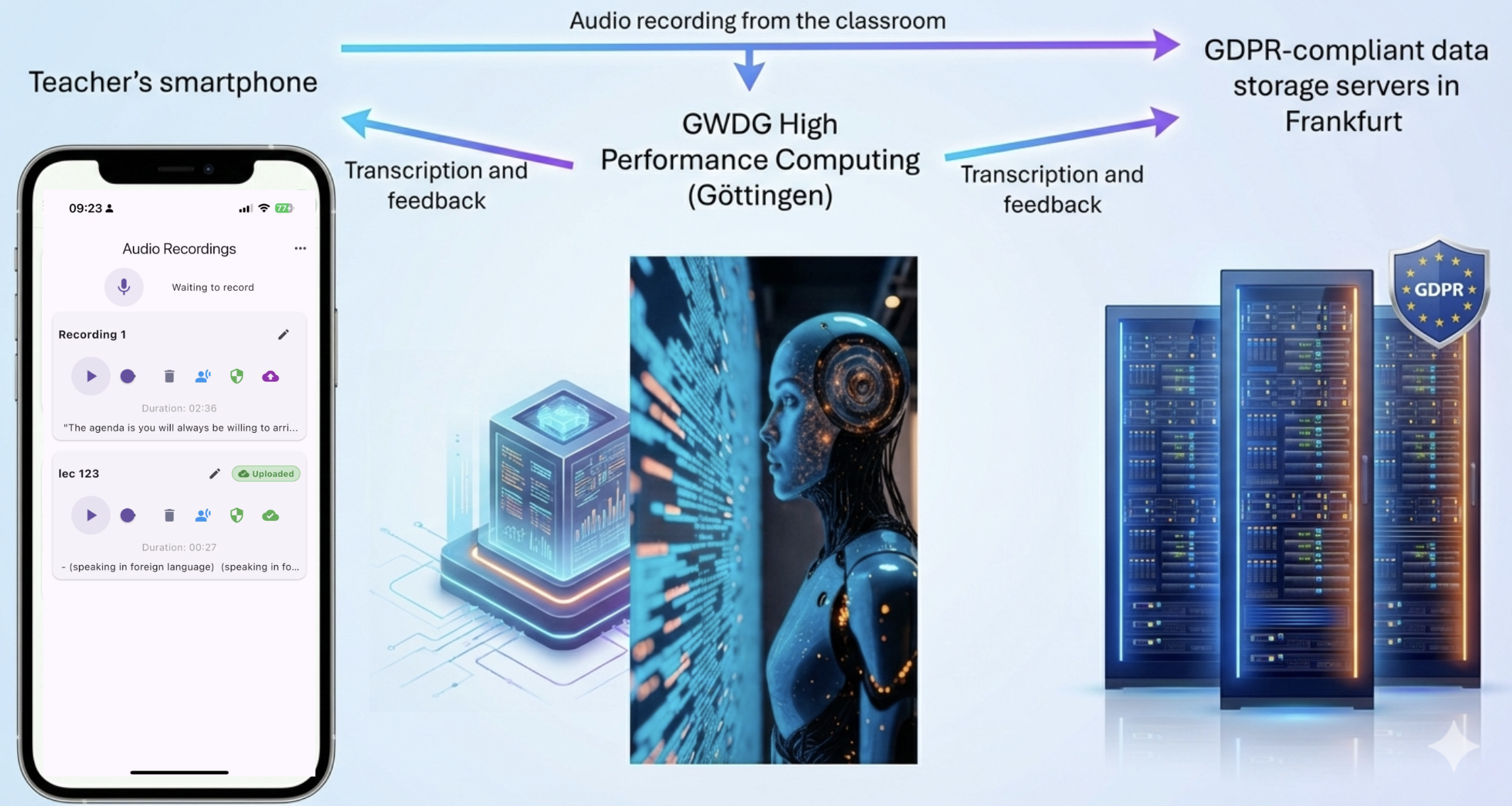 Working with classroom audio in Germany means working under GDPR, and this constraint influenced almost every design decision.